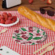 Prato De Papel Cerejas vermelhas em gingham rosa