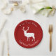Silhueta branca de um veado. De uma gravura do vintage de um veado vermelho europeu. A cor vermelha do fundo é customizável.
