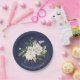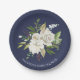 Prato De Papel Chá das flores do marinho & do rosa branco 7"