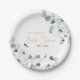 Prato de papel elegante para chá de noiva moderno de verão com flores botânicas apresenta um buquê de Lisianthus suculento branco em tons de branco e marfim, com folhas botânicas verdes exuberantes e eucalipto. Encontre mais designs e variações correspondentes na minha loja "celebrationmoment".