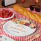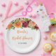 Este prato lindo e elegante apresenta flores vermelhas burgundy e laranja em aquarela com folhagens. O texto combina fontes manuscritas e serifadas para um visual moderno e sofisticado. É perfeito para um chá de bebê rústico de outono.