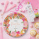 Prato De Papel Chá de bebê em tom de rosa laranja moderno com flo