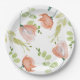 Prato De Papel Chá de Bebê Floral Aquarela Coral Verde