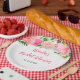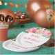 Este prato lindo e elegante apresenta rosas cor-de-rosa e folhagens em aquarela. O texto combina fontes manuscritas e serifadas para um visual moderno e sofisticado. É perfeito para um chá de bebê rústico de primavera ou verão.