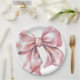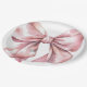 Um charmoso design de prato de papel apresentando um grande laço cor-de-rosa em aquarela no centro. Este design simples, minimalista e elegante é perfeito para um chá de bebê para menina, um tema de chá de noiva como "Ela está dando o nó", ou qualquer tema de festa fofo.