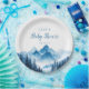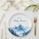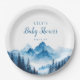 Esses pratos de papel para chá de bebê montanhas aquarela modernos rústicos podem ser personalizados com suas informações em tipografia moderna. Criado por Thisisnotme©