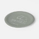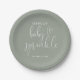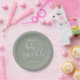 Este prato de papel para chá de bebê neutro em verde sálvia com letra elegante pode ser personalizado com seu nome e data do chá. Criado por Thisisnotme©