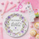 Prato De Papel Chá de Bebê Rosa Elegante com Flores Roxas