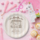 Prato De Papel Chá de Bebê tema Parisiense listras bege Café