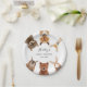 Placa de chá de fraldas do tema Rustic Woodland com ilustração aquosa de um guaxinim, raposa, veado, coruja, urso e coelho. Design neutro em termos de gênero.