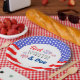 Prato De Papel Chá de fraldas branco vermelho e devido