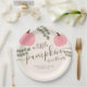 Chapas de papel de chá de fraldas de abóbora cor-de-rosa e giro. Este design apresenta uma fonte moderna de escrita de caligrafia, abóboras cor-de-rosa e ramificações verdes de Eucalipto.