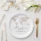 Esta placa de papel do chá de fraldas apresenta um mapa de cor d'água bege, trilha de avião do coração e uma letra elegante de script. Este convite é perfeito para o seu viagem ou chá de fraldas temático de aventura neutro por sexo. Edite com facilidade o texto *maioria* para atender às necessidades do seu evento.