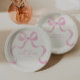 Comemore ao estilo com estas placas de papel de chá de fraldas inspiradas na safra, com um quadro oval, desenhado à mão, macio e rosa, com um arco.