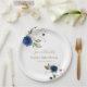 Prato De Papel Chá de fraldas de Flores Douradas Azul Elegante
