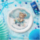 Um adorável ursinho de pelúcia voando num avião sobre estas placas de papel de chá de fraldas. Consulte a nossa coleção de itens correspondentes. https://www.zazzle.com/collections/teddy_bear_blue_for_baby_boy_gifts_and_invitations-119407877985847976