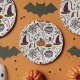 A doce adição perfeita a uma festa de Halloween, as placas de papel com padrão Halloween. Apresentando ilustrações feitas à mão de ícones clássicos do Dia das Bruxas, como abóboras, bruxas, fantasmas e doces! Arte original e design por Annie Montgomery Design.