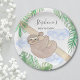 Placa De Papel De Chá de fraldas De Lama De Menino Bonito. Esta placa de chá de fraldas divertida apresenta uma doce e sorridente preguiça-bebê pendurada em um galho, com folhas verdes de cor d'água da selva e nuvens azuis. Todo o texto é personalizável. Há guardanapos na minha loja. Porque nós criamos nosso próprio trabalho de arte você não encontrará essa imagem exata de outros designers. Original Watercolor © Michele Davies.