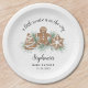 Esta placa de papel de Chá de fraldas de Cookie de Natal é decorada com biscoitos de gengibre e verde de pinho. Facilmente personalizável. Perfeito para um chá de fraldas festivo, feminino ou neutro em sexo. Use a Ferramenta Design para alterar o tamanho, o estilo ou a cor do texto. Original Watercolor © Michele Davies.