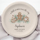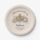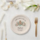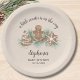 Esta placa de papel de Chá de fraldas Cookie de Natal é decorada com biscoitos de gengibre e verde de pinho em fundo bege mole. Facilmente personalizável. Perfeito para um chá de fraldas festivo, feminino ou neutro em sexo. Use a Ferramenta Design para alterar o tamanho, o estilo ou a cor do texto. Original Watercolor © Michele Davies.