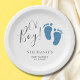 A Placa de Papel Chá de fraldas deste Rapaz é decorada com os pés de bebê brilhantes azuis e as palavras, Oh Boy! Facilmente personalizável.
