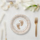 Serve os tratamentos com um toque de vidro usando estas placas de papel de chá de fraldas de ouro personalizadas, com um falso pé brilhante de bebê cercado por uma borda de faixa de ouro chic. Ideal para chás de fraldas com temas dourados ou neutros, estas placas personalizadas podem ser personalizadas com o nome e a data de chá da honra. Um na moda e um detalhe funcional para sua configuração de mesa coordenada.