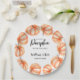 Orange Little Pumpkin Halloween Fall Paper Plates, Um pequeno abóbora está a caminho! cerebrar o seu chá de fraldas Halloween, outono com esta linda abóbora aquarela e elegante tipografia caligráfica moderna em branco
