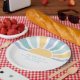 Prato De Papel Chá de fraldas De Sol Vem Os Raios Amarelos Do Fil
