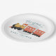 Este design de placa de papel chá de fraldas giro, caprichoso e moderno apresenta um desenho animado de viagem de trem e pode ser personalizado com o(s) nome(s) dos pais/mãe e a data do seu partido. O transporte perfeito temia a adição ao chá de fraldas de seus casais.