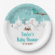 Esta linda e divertida placa de chá de fraldas apresenta uma adorável família de raposa-ártica em um cenário maravilhoso de inverno com árvores com capas de neve e um pássaro azul em um galho com Holly. Ao fundo está um céu verde azul teal e flocos de neve caindo. O texto combina fontes decorativas e sans serif para um aspecto na moda e moderno. Isto é perfeito para um chá de fraldas temático de Natal ou inverno.
