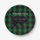 As placas de papel rústicas criam seus próprios personalizadas, lenhador que rústico do chá preto e verde, na moda do bebé da xadrez do búfalo a xadrez verifica o design do chá de fraldas com um tema dos animais da floresta da floresta. Fundo preto e verde da xadrez do búfalo com sombra do urso preto no centro de atenção. O urso é personalizado com nome e "chá de fraldas" nas letras cinzentas lunáticas que olham escritas à mão. Data abaixo. Lê o "obrigado você" na parte superior em cinzas de harmonização, letras principais. O chá de fraldas preto e verde feito sob encomenda da xadrez chapeia estilos rústicos do chá de fraldas dos animais da floresta do fósforo, e fontes do partido de chá de fraldas do menino. Os guardanapo de papel de coordenação do urso da xadrez disponíveis em nosso Zazzle.com/angela65 armazenam assim como as outras fontes do chá de fraldas do menino e decoração do tema da floresta.