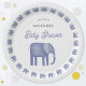 Apresentando um design de elefante azul giro, perfeito para uma celebração de chá de fraldas de amante de os animais. Você pode personalizar facilmente este design para seu gosto alterando o texto. Arte original de Nic Squirrell.