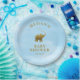 Prato De Papel Chá de fraldas Elefante Azul-ouro
