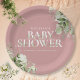 Uma elegante placa de papel chá de fraldas com tipografia quic e folhagem botânica bonito num fundo cor-de-rosa-rosa. Projetado por Thisnotme©