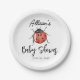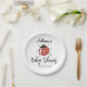 Placas de papel de Chá de fraldas branco e preto que apresentam uma joanilha vermelha em aquarela. É muito fácil personalizar, com seus detalhes pessoais.