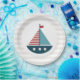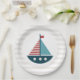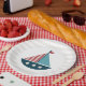 O design de chá de fraldas brilhante e branco apresenta um design de veleiro bonito.