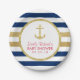 Placas de papel para Chá de fraldas náutico com tiras de Marinho de Âncora Douradas.