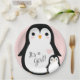 Celebre os novos pais e o bebê com este design de pinguim fofo! O fundo cor-de-rosa macio e o pinguim giro faz dele um design perfeito para uma menina a caminho, especialmente para um chá de inverno!