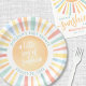 Um pequeno chapéu de papel sol. Este alegre design de placa de papel apresenta um sol vibrante no centro, com a frase "A Little Ray of Sunshine" exibida em cima. Os raios solares brilham em tons quentes de amarelo, laranja, vermelho, lacre e azul, criando um olhar brilhante e alegre perfeito para qualquer celebração com o tema do sol. Ao cercar o sol, você pode personalizar o texto para incluir um nome de chá de fraldas e data ou alterá-lo para uma festa de primeiro aniversario com "Primeira viagem ao redor do Sol." Totalmente personalizável, você pode ajustar o texto, as cores e os elementos de design para corresponder ao seu evento. Uma adição divertida e festiva a chás de fraldas, aniversários, ou qualquer reunião especial celebrando seu pequeno sol!
