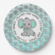 Prato De Papel Chá de fraldas Teal e Elefante de Cinza