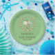 As placas de papel de chá de fraldas cômico apresentam uma coroa de abelha e flor bonitinhas com texto personalizável sobre fundo verde.