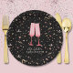 Duas taças de vidro cor-de-rosa em um fundo preto com confetes cor-de-rosa e dourados, esses pratos de papel são perfeitos para um chá de noiva com tema brunch e bubbly. Itens COMBINÁVEIS em nossa coleção.