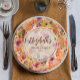 Uma colagem de elegantes flores de outono em aquarela e folhagens de outono acentuam esses pratos de papel personalizados para chá de noiva. Itens CORRESPONDENTES em nossa coleção.