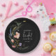 Pratos de papel elegantes para chá de noiva em vários tamanhos e estilos apresentam flores silvestres em aquarela e seus detalhes em letras elegantes em um fundo preto. Itens CORRESPONDENTES em nossa coleção.