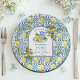 Um design elegante de Chá de Noiva com fundo de azulejo azul e limões.