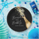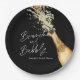 Brunch Elegante Preto e Dourado e prato de papel personalizado com bolhas. Perfeito para o seu tema de Brunch e Espumante no chá de noiva. Traga um toque festivo para o seu dia. Além disso, você pode personalizá-los com o seu nome e evento. Projetado com uma linda garrafa de champanhe dourada em aquarela. Itens correspondentes na nossa loja Cava Party Design.