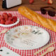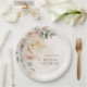 Pratos de papel para chá de noiva atemporais inspirados na natureza, projetados com tons quentes, texturas terrosas e botânicos caprichosos. Este design de pratos de papel estabelecerá o tom perfeito para a sua celebração de outono dos sonhos. Itens correspondentes em nossa loja Cava Party Designs.