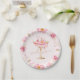 Pratos de papel para Chá de Noiva Floral Pétalas e Prosecco apresentam uma taça de prosecco dourada e rosa adornada com delicadas flores e pétalas cor-de-rosa. O design é perfeito para um brunch temático Pétalas e Prosecco e celebração cheia de estilo. Com letra caligráfica elegante e detalhes florais rosa elegantes.
