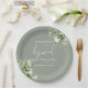 Este prato de papel de chá de noiva com folhas botânicas elegantes pode ser personalizado com sua informação em tipografia chic. Desenhado por Thisisnotme©