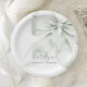Pratos de Papel Chá de Noiva Laço Verde. Este design elegante apresenta um laço verde suave e discreto que simboliza a bela jornada de “dar o nó”, adicionando um toque significativo à sua celebração, perfeito para uma noiva que valoriza sofisticação e simplicidade.